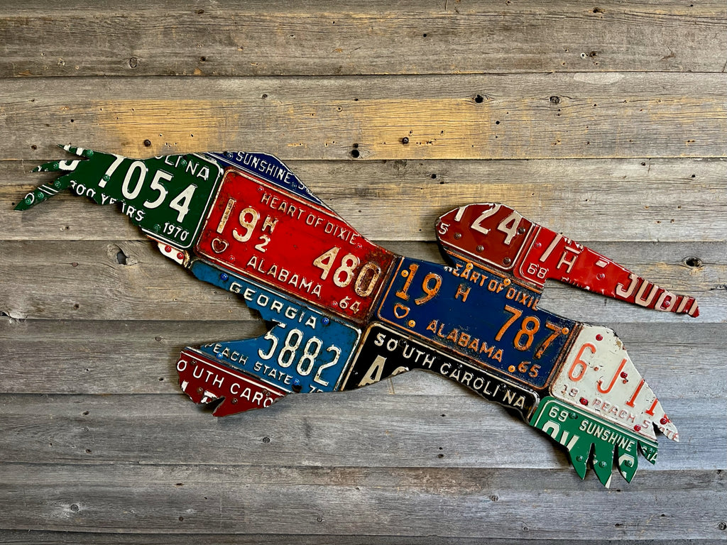 “With Frame Add-on” - While my pieces look amazing hung without a frame, I feel that mounting the artwork on Barnwood really adds definition and depth, and perfectly compliments aged license plates. Should you choose to have your piece framed, please specify whether you would like Espresso-stained or natural barnwood as the background in the “Special Notes and Requests” textbox prior to adding it to your cart.