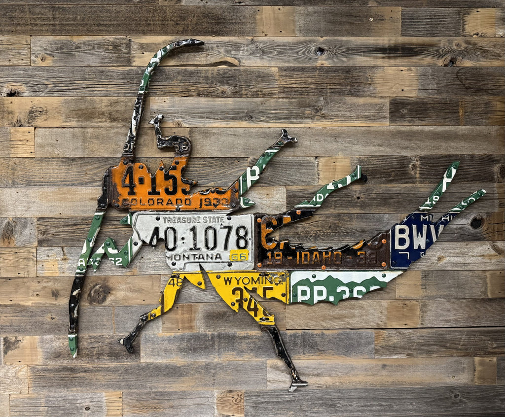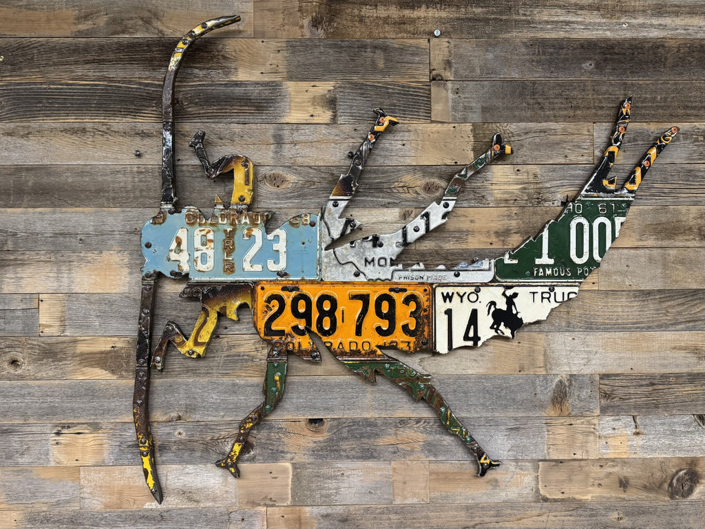 Celebrate those stonefly hatches that we look forward to each year. Every license plate art piece is handmade and is unique. Yours will look very similar but will not be exactly the same as the photo example. The 100 pound golden retriever, Ranger, is there to help with sizing.