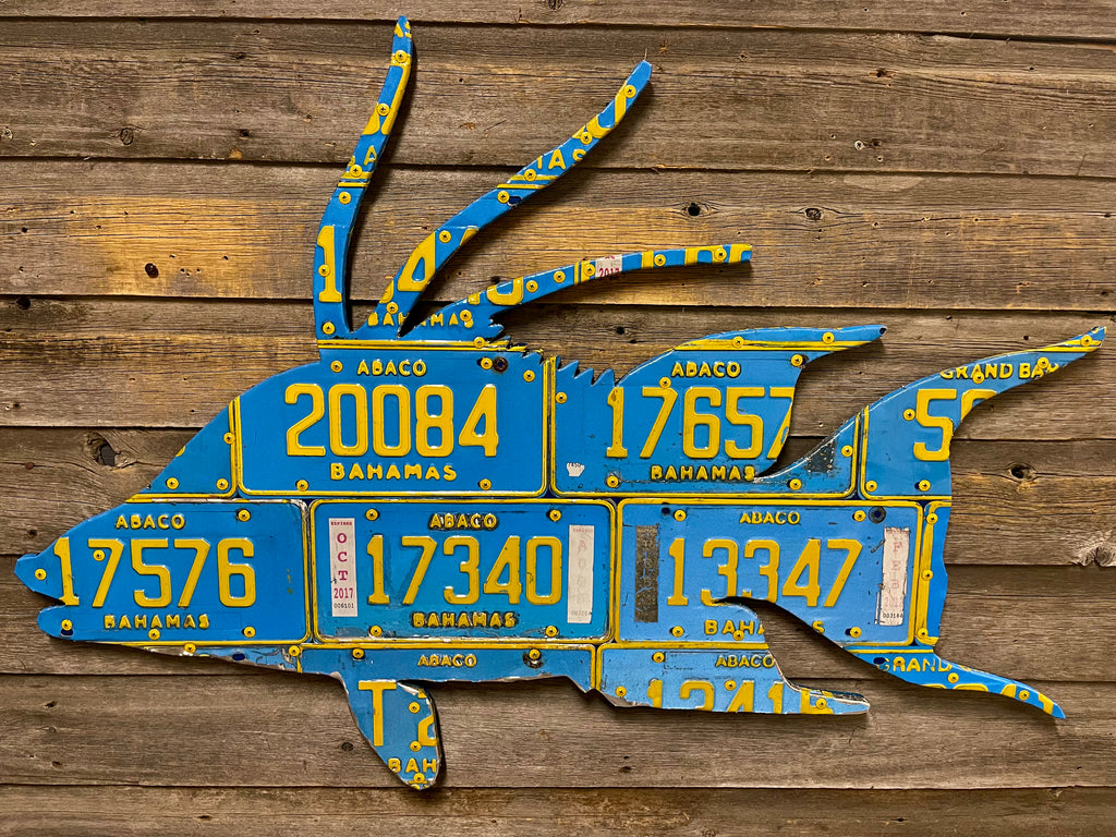 What's not to love about the hogfish . . . fun to catch, funky to look at, and divine to eat.  These iconic fish to warm tropical waters lends itself to being a unique piece of artwork on your walls.  Every license plate art piece is handmade and is unique. Yours will look very similar but will not be exactly the same as the photo example.