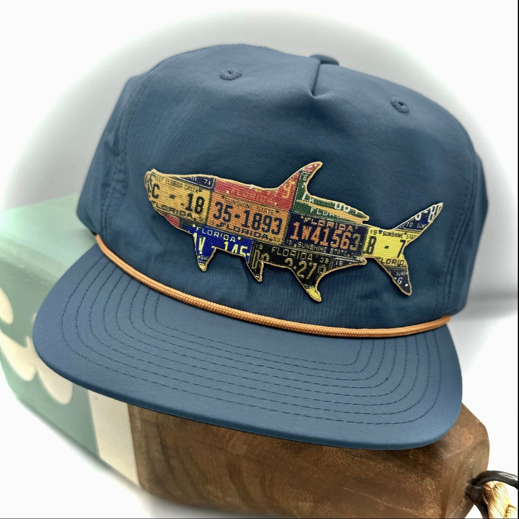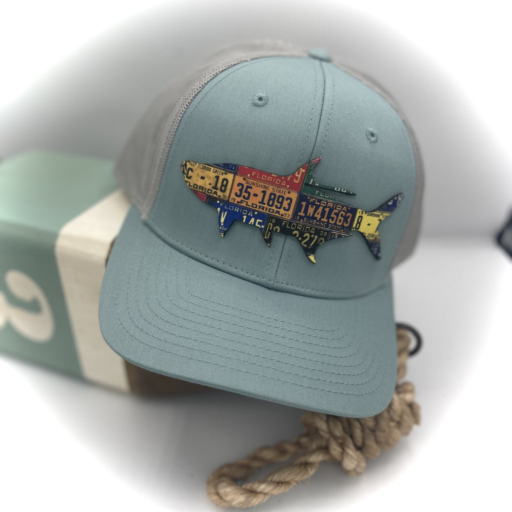 This hat is printed on a variety of Richardson and Pacific snap-back mesh hats and comfort foamies to fit your individual needs. These feature a made-in-USA leather patch with colorful antique Florida license plates on the brow! Super comfortable for those hot days on the water (passes the sweat test) or looks stylish lounging around with your favorite beverage in hand.
