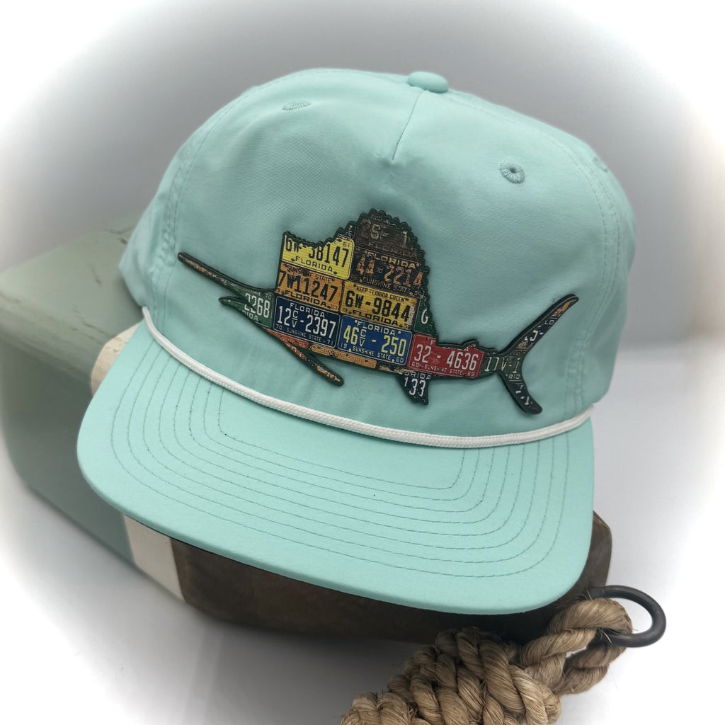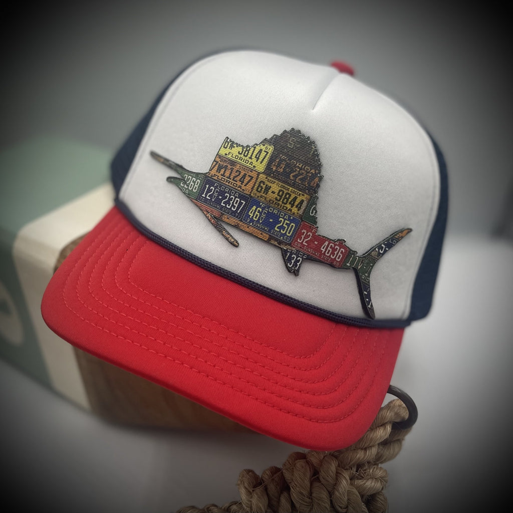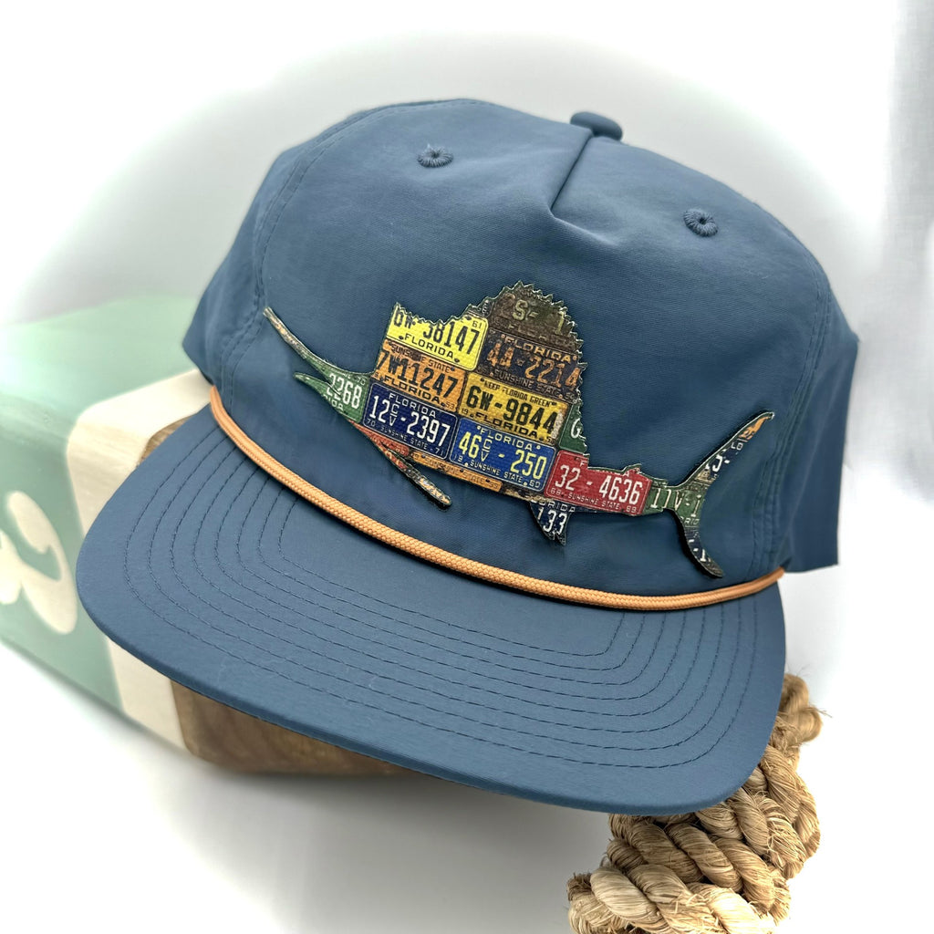 Capture the fastest fish of the sea with the new Florida sailfish! This hat is printed on a variety of styles to fit your individual needs. The Richardson or Pacific trucker ballcap has a durable cloth front with a contrasting mesh back. For UPF 50+ sun protection, we offer performance fit and rope-style hats that are sweat stain resistant. The foamie hats offers a larger and lighter fit for those sunny days.