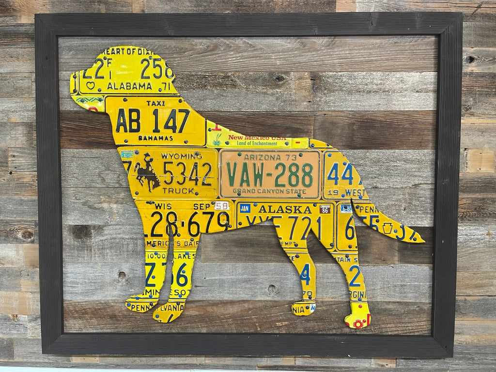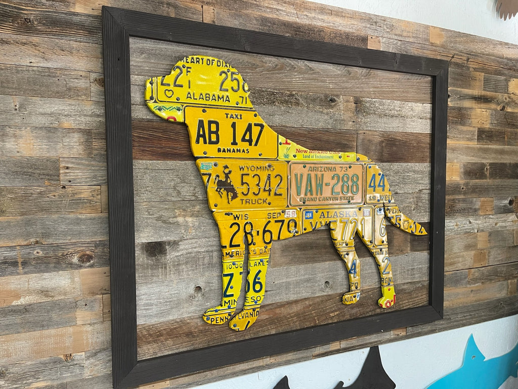 “With Frame Add-on” - While my pieces look amazing hung without a frame, I feel that mounting the artwork on Barnwood really adds definition and depth, and perfectly compliments aged license plates. Should you choose to have your piece framed, please specify whether you would like Espresso-stained or natural Barnwood as the background in the “Special Notes and Requests” textbox prior to adding it to your cart.