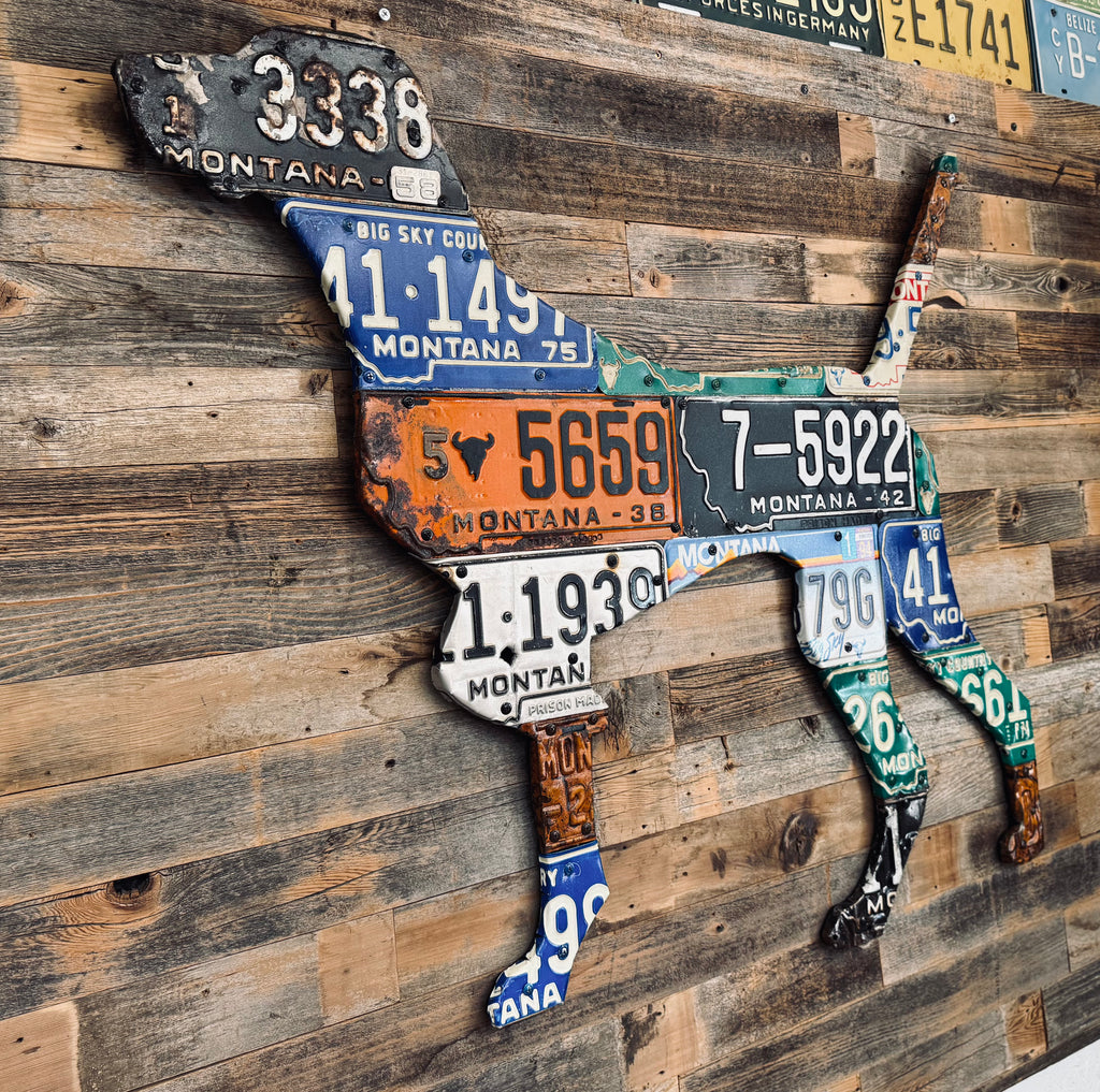 “With Frame Add-on” - While my pieces look amazing hung without a frame, I feel that mounting the artwork on Barnwood really adds definition and depth, and perfectly compliments aged license plates. Should you choose to have your piece framed, please specify whether you would like Espresso-stained or natural Barnwood as the background in the “Special Notes and Requests” textbox prior to adding it to your cart.