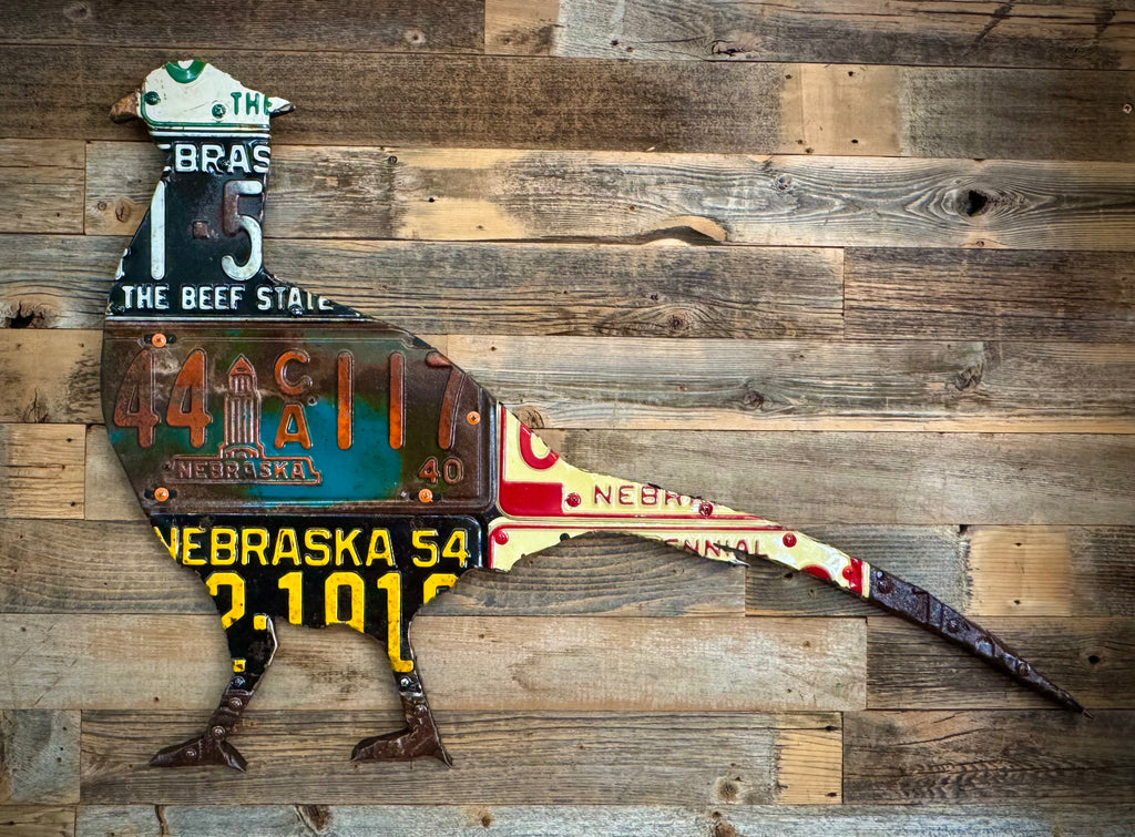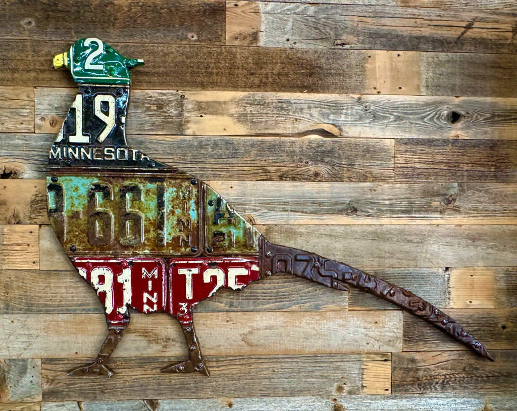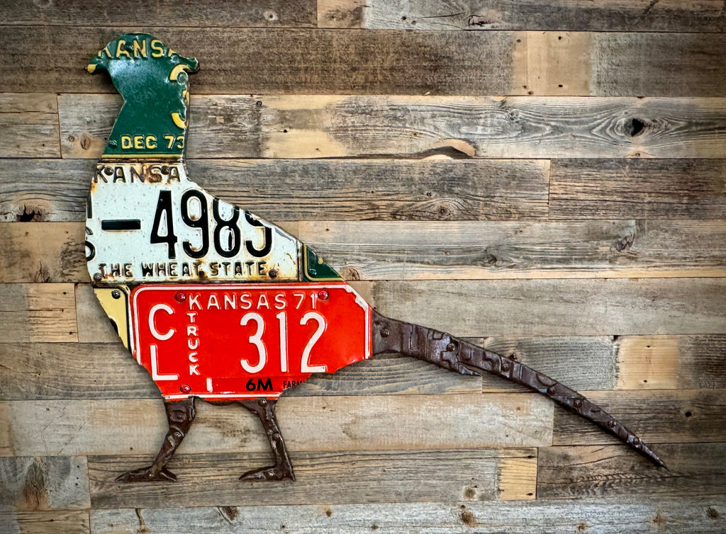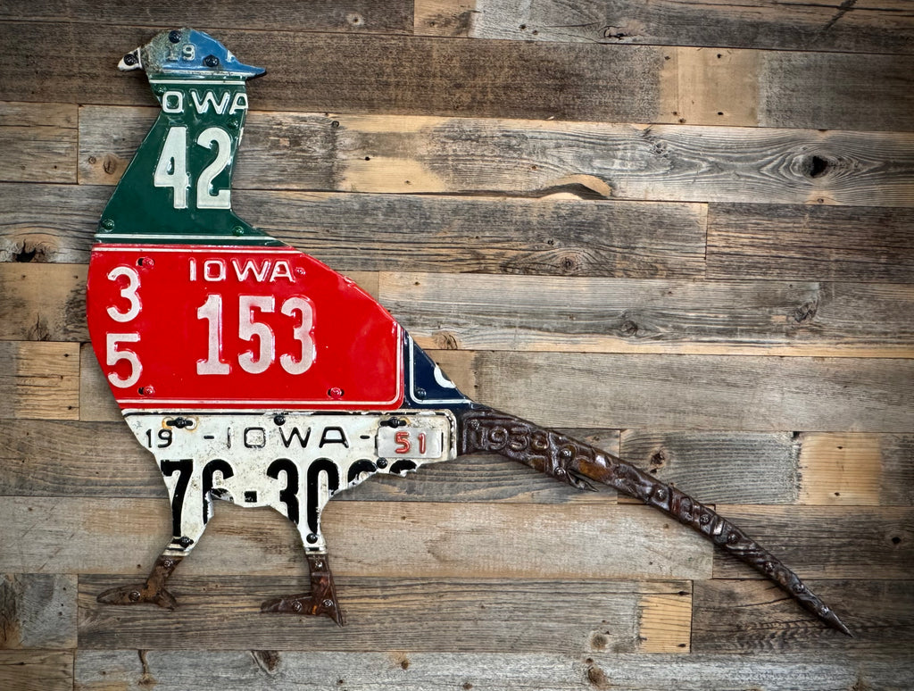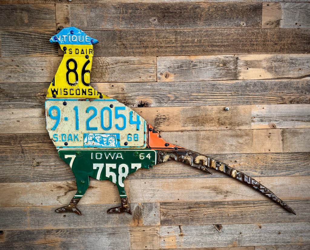 Celebrate the pheasant fields in this mixed Midwest pheasant with this standing piece. Just like the fields you flush, you can choose your state or up to 7 states to truly personalize. Please put your state(s) in notes upon ordering. Every license plate art piece is handmade and is unique. Yours will look very similar but will not be exactly the same as the photo example.