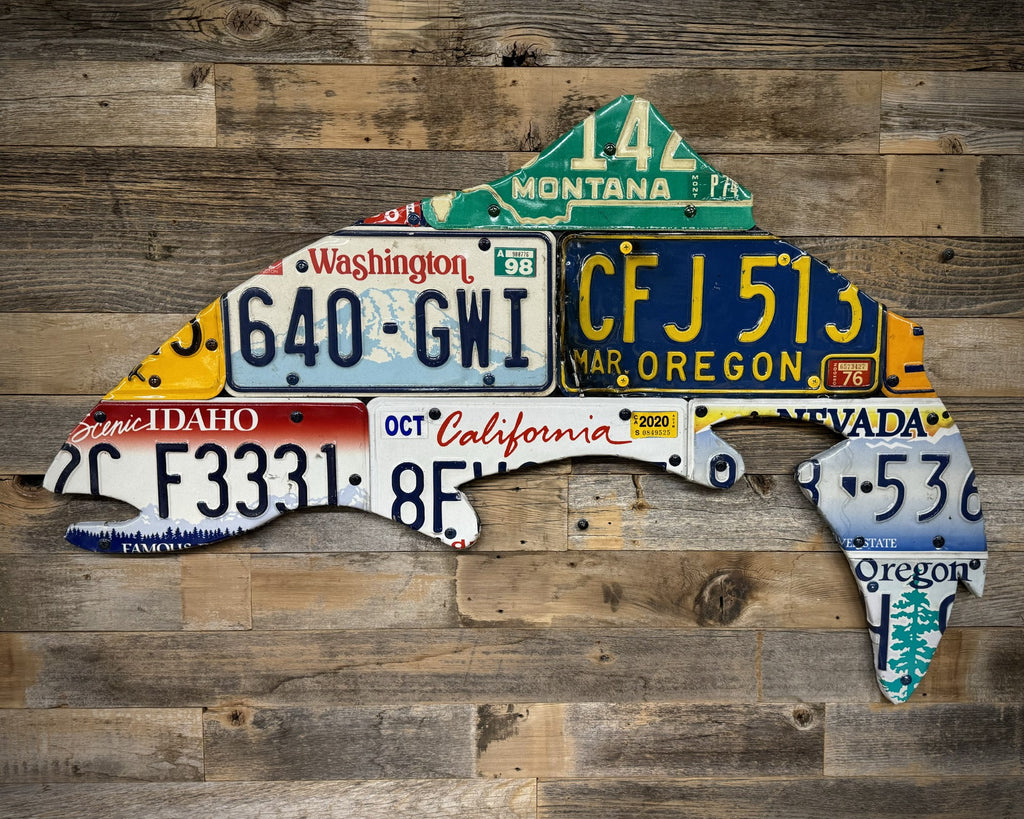 The Pacific Northwest has magical waters and beautiful trout. Celebrate this with artwork of a mixture of Pacific Northwest license plates.Every license plate art piece is handmade and is unique. Yours will look very similar but will not be exactly the same as the photo example.