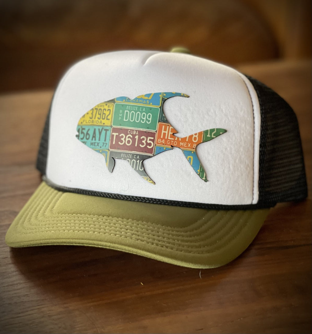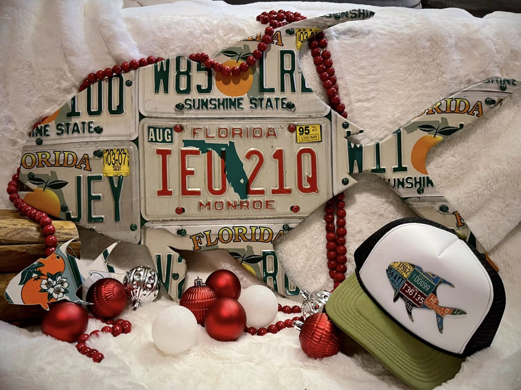 Every size of a fish is a winner! By popular request is our 30" permit. The license plate art piece is handmade and unique. Yours will look very similar but will not be exactly the same as the photo example but will have a mix of Florida plates.