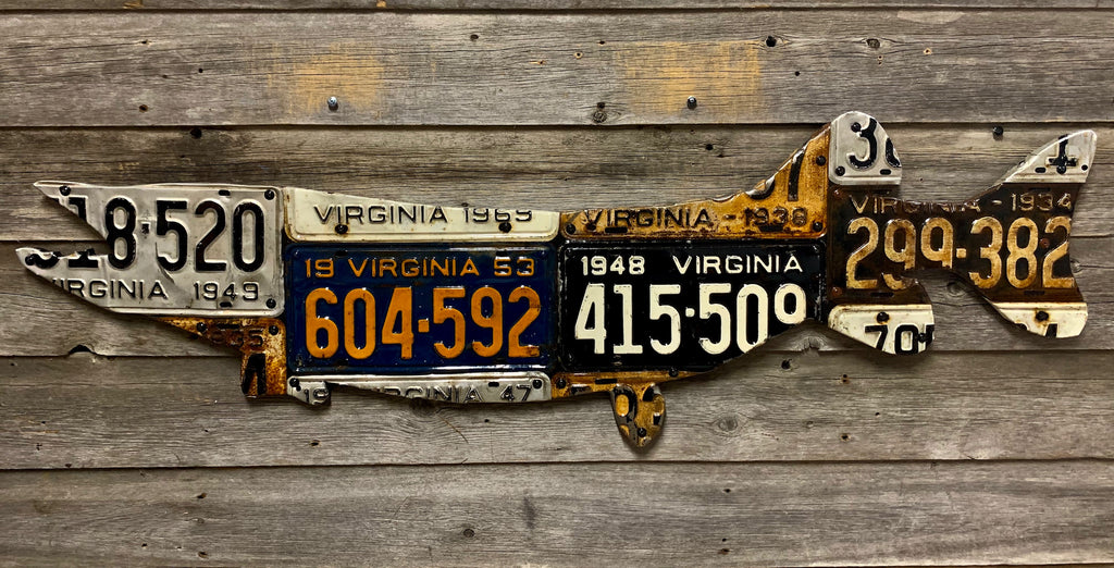 “With Frame Add-on” - While my pieces look amazing hung without a frame, I feel that mounting the artwork on Barnwood really adds definition and depth, and perfectly compliments aged license plates. Should you choose to have your piece framed, please specify whether you would like Espresso-stained or natural barnwood as the background in the “Special Notes and Requests” textbox prior to adding it to your cart.