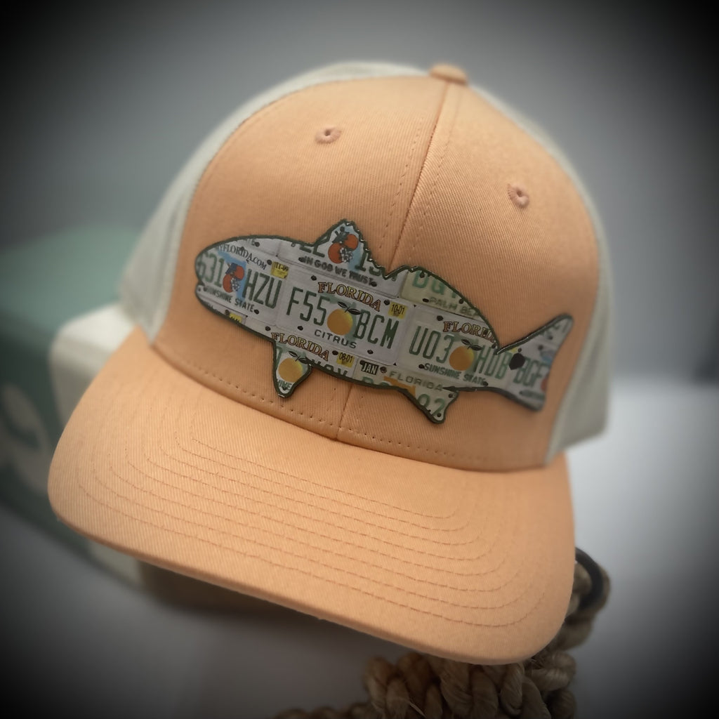 Chasing spotted tails with iconic Florida oranges makes this cap extra sweet. This hat is printed on a variety of Richardson and Pacific snap-back mesh hats and comfort foamies to fit your individual needs. These feature a made-in-USA patch with vibrant Florida orange license plates on the brow! These iconic Florida orange plates bring back sunny memories of enjoying targeting epic redfish and days in the sun.