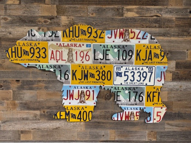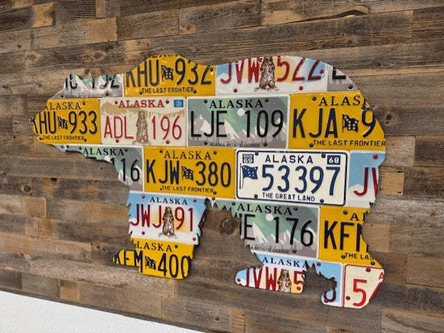 The allure of the grizzly bear is synonymous with the rugged American mountains. This standout artwork pays proper homage to the strength of these amazing animals. Please denote in comments what state(s) you would like the artwork to include. Your artwork will look similar, however, due to each piece being a true original, plates and colors may vary.