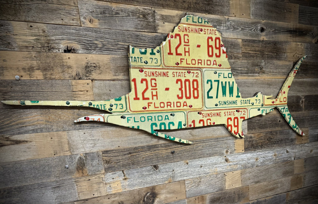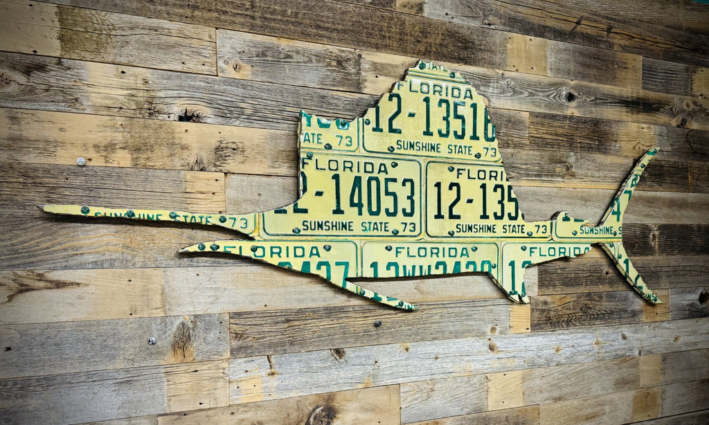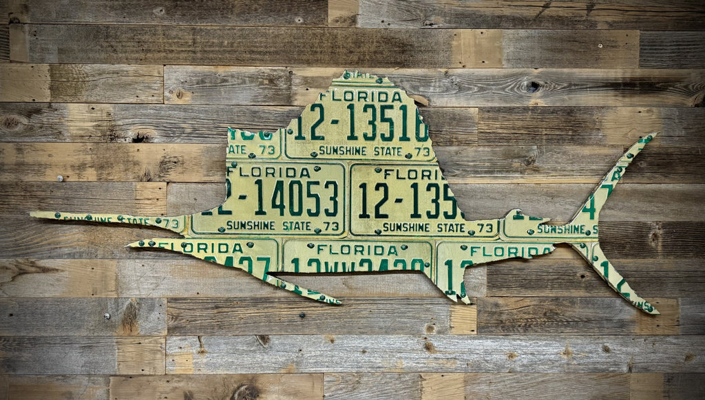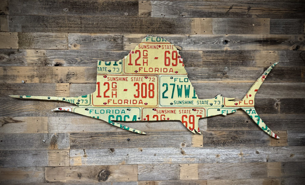 Florida 1970's Vintage Sailfish 48" License Plate Art