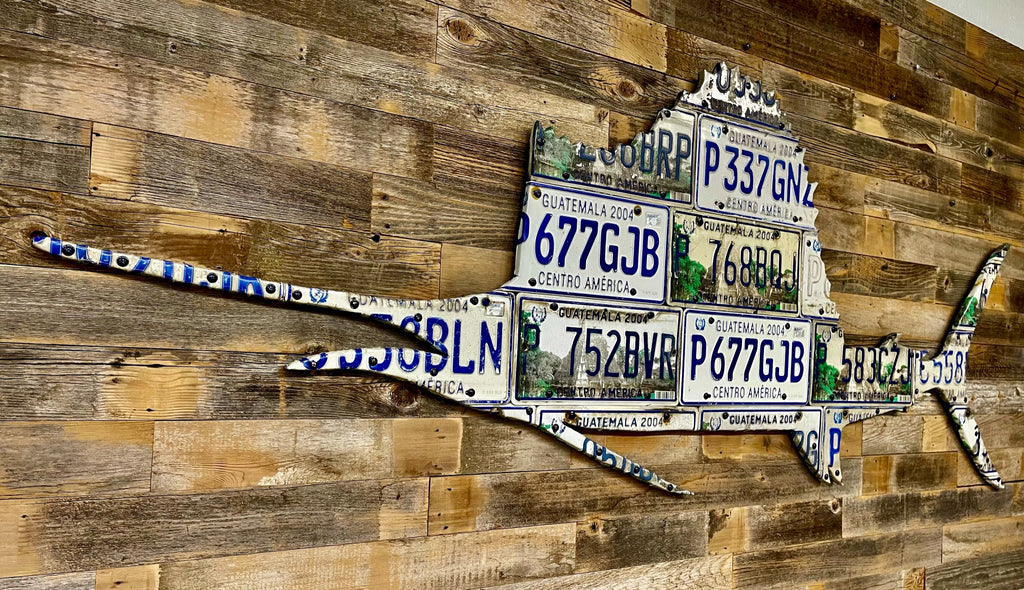 Adorne your walls with this Guatemala sailfish. This trophy fish comes with rare license plates that have been "crafty" to illude customs. Every license plate art piece is handmade and is unique. Yours will look very similar but will not be exactly the same as the photo example.