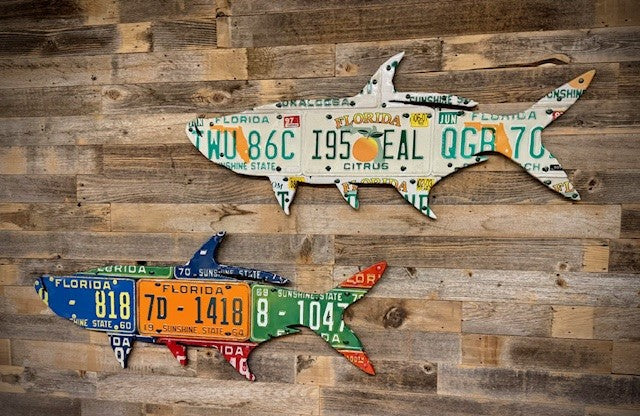 “No-Frame” - All of my pieces are built by wrapping license plates around a ¾-inch wooden base and are ready to hang straight out of the box. Each comes pre-fitted with reinforced hanging wire, so you can mount the piece however you feel in your space.