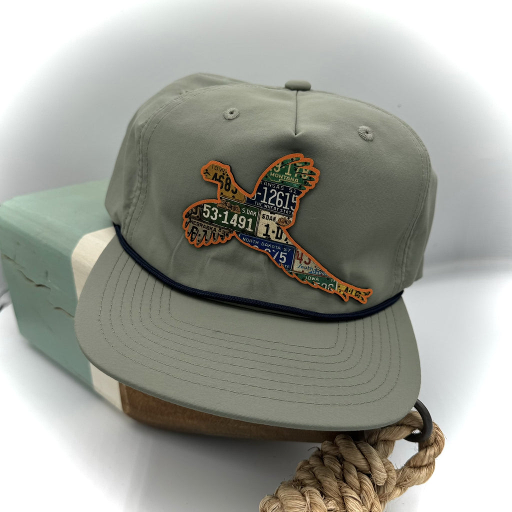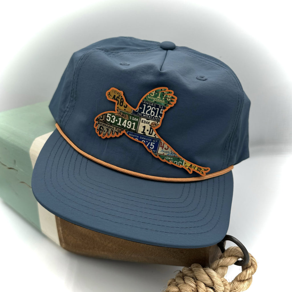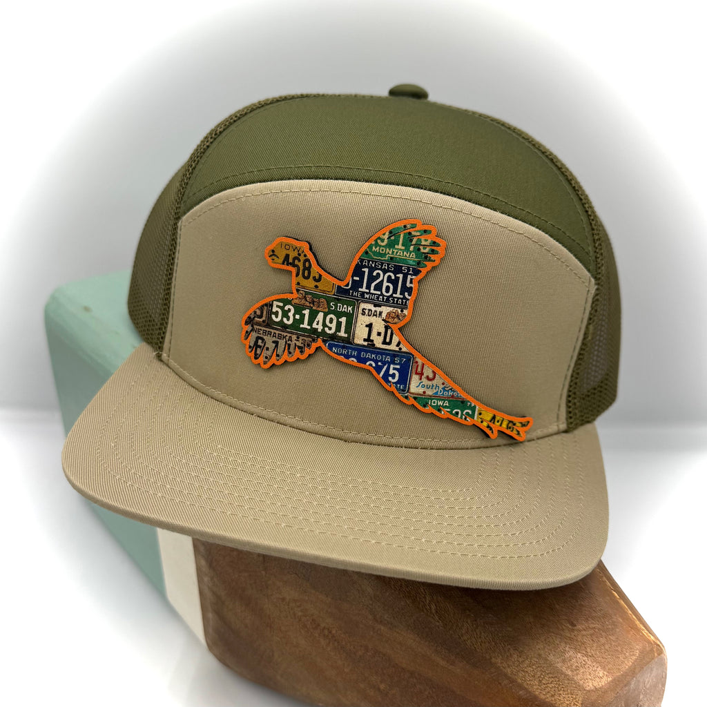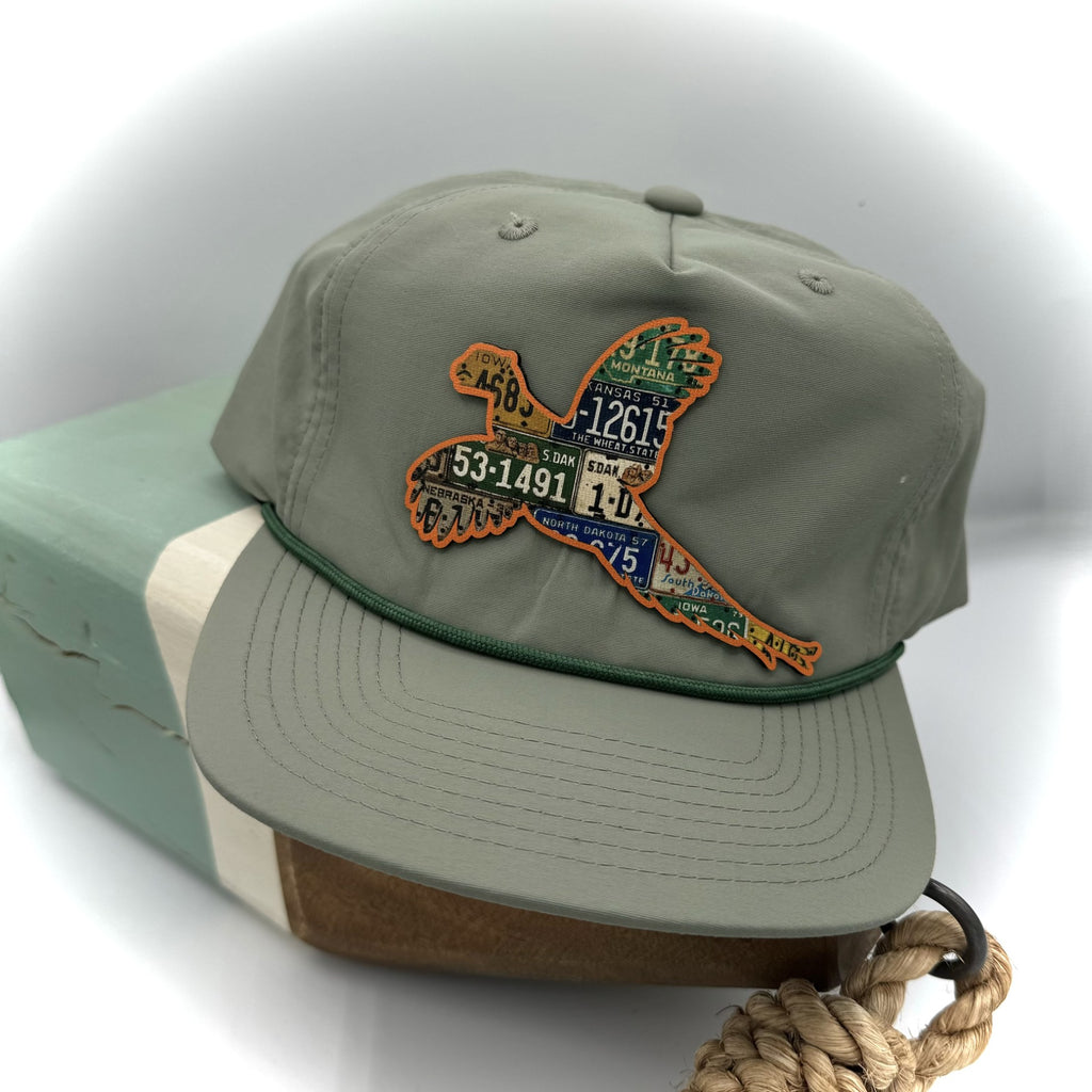 Get ready for hunting season! Represent those infamous pheasant hunting lands all year long with this midwest pheasant. This hat is printed on a variety of Richardson and Pacific snap-back mesh hats, comfort foamies, and unstructured Umpqua hat to fit your individual needs. These feature a made-in-USA leather patch with vibrant license plates on the brow!